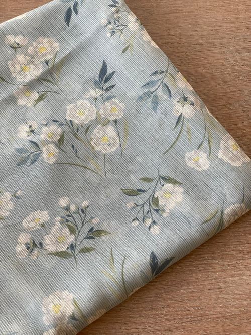 Tissu crêpe - Imprimé Sauge d'été - Bleu Horizon