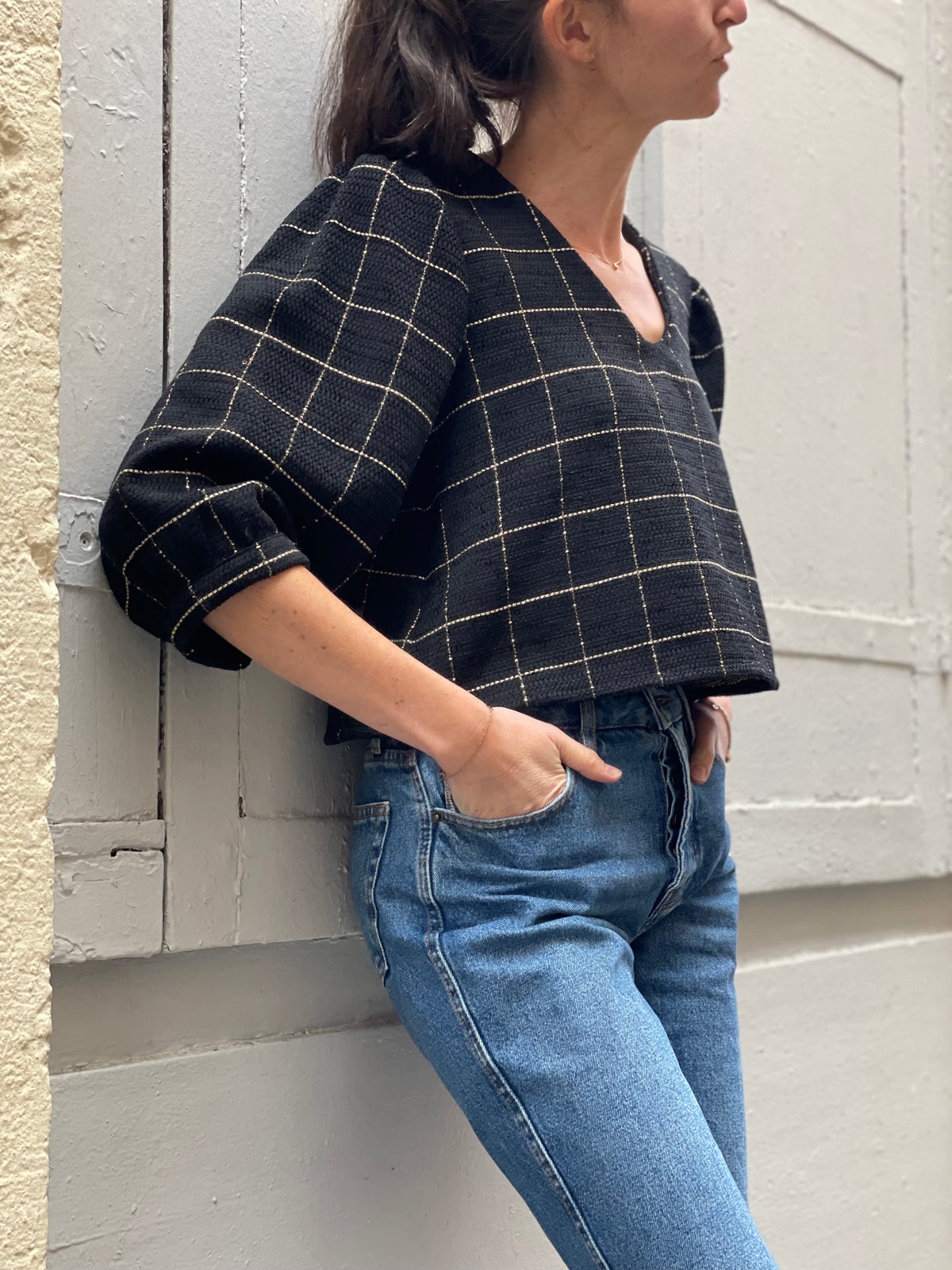 Le coup de coeur absolu : le jacquard Quadro, étoffe française aux reflets dorés, pensé pour les vestes de caractère et les fêtes à venir. Le caméléon qui ira avec tous vos projets de veste, short, jupe ou robe.