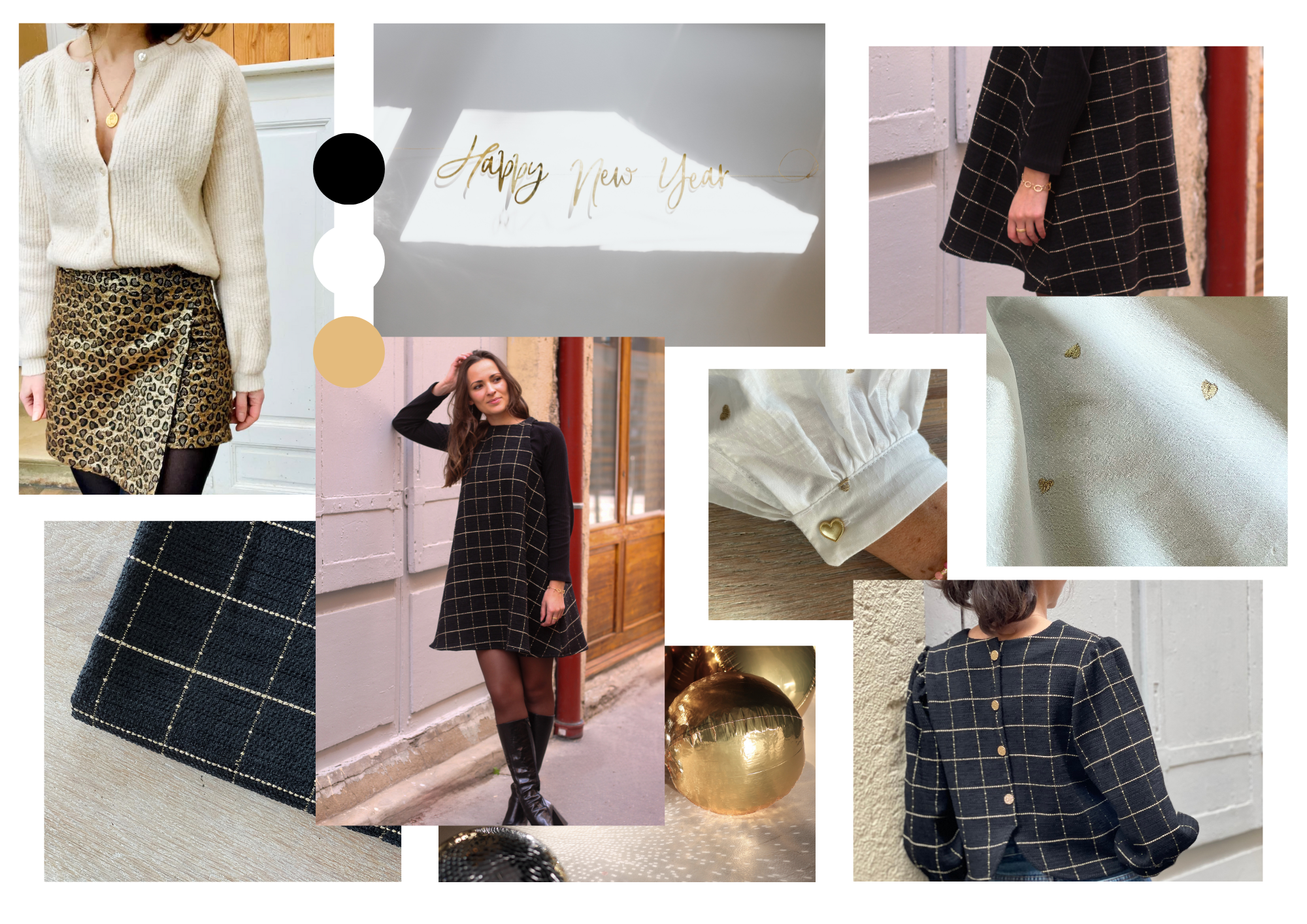 Avec Golden Party, nous signons une dernière parenthèse festive et précieuse 100% Française 🇫🇷 : une broderie cœurs dorés sur popeline façonnée, et un jacquard, Quadro à grands carreaux or sur fond noir, véritable coup de coeur de l’équipe.