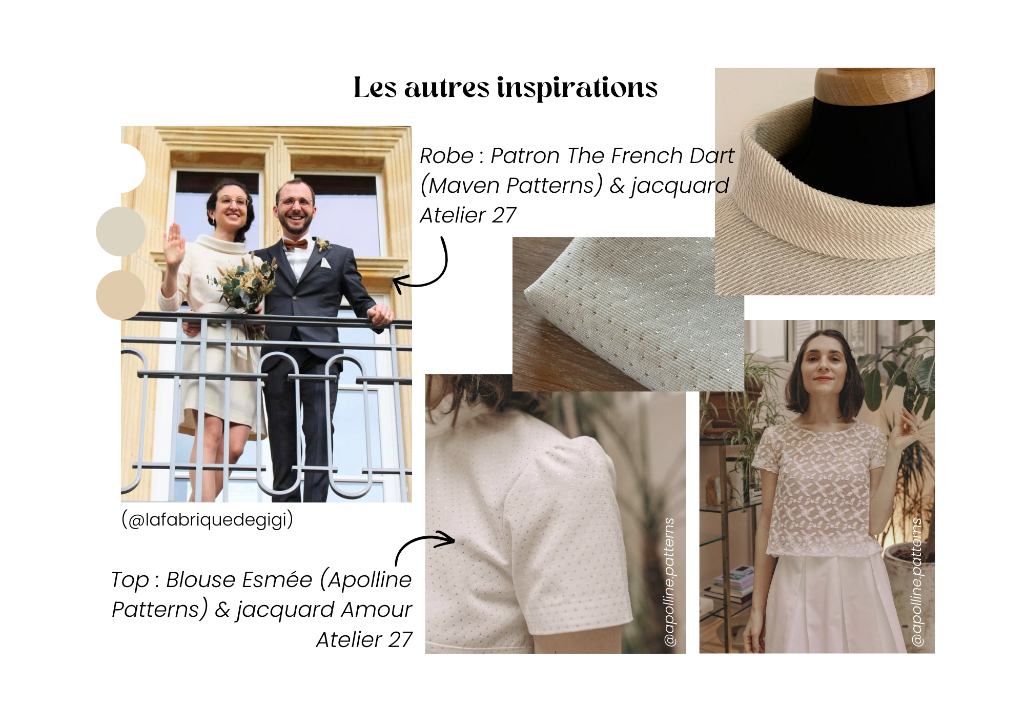 Les meilleurs blogs mariage que nous adorons pour s'inspirer à coudre sa robe ou sa tenue de mariée : la mariée aux pieds nus, le blog de madame c, un beau jour, la mariée enjouée, et bien sûr, on vous invite à consulter notre tableau sur Pinterest "Coudre sa robe de mariée" ❤️