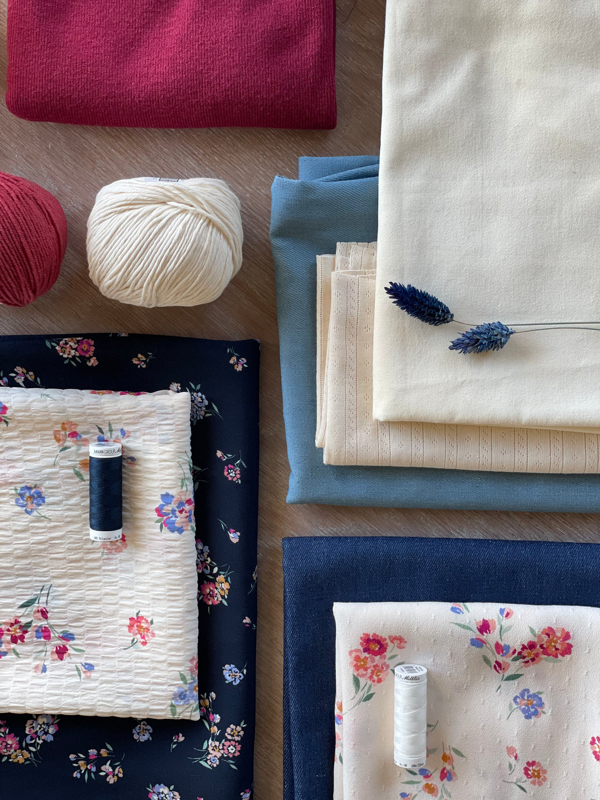 Un nouvel uni, la maille Giorgia coloris Grenat, vient les sublimer avec le denim Dennys clair, la gabardine ivoire ou encore la maille Cagliari.
