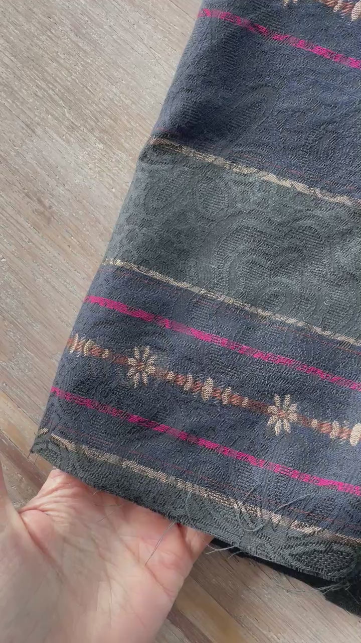 Ce que l'on adore : Une nouvelle rayure jacquard souple pour vos projets de blouse / chemise hivernale. Un classique avec ce petit twist de la touche de fushia et or.